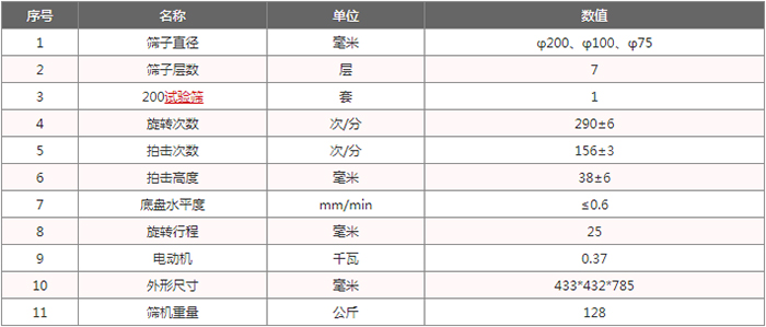 拍擊篩技術(shù)參數(shù)