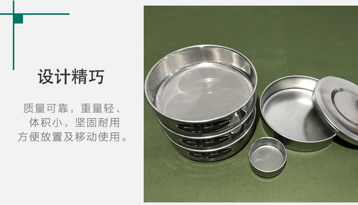 7、試驗篩篩框采用SUS304不銹鋼材質(zhì)拉伸拋光而成,壁厚0.6mm,光澤均勻一致,堅固耐用,不存在磁性;